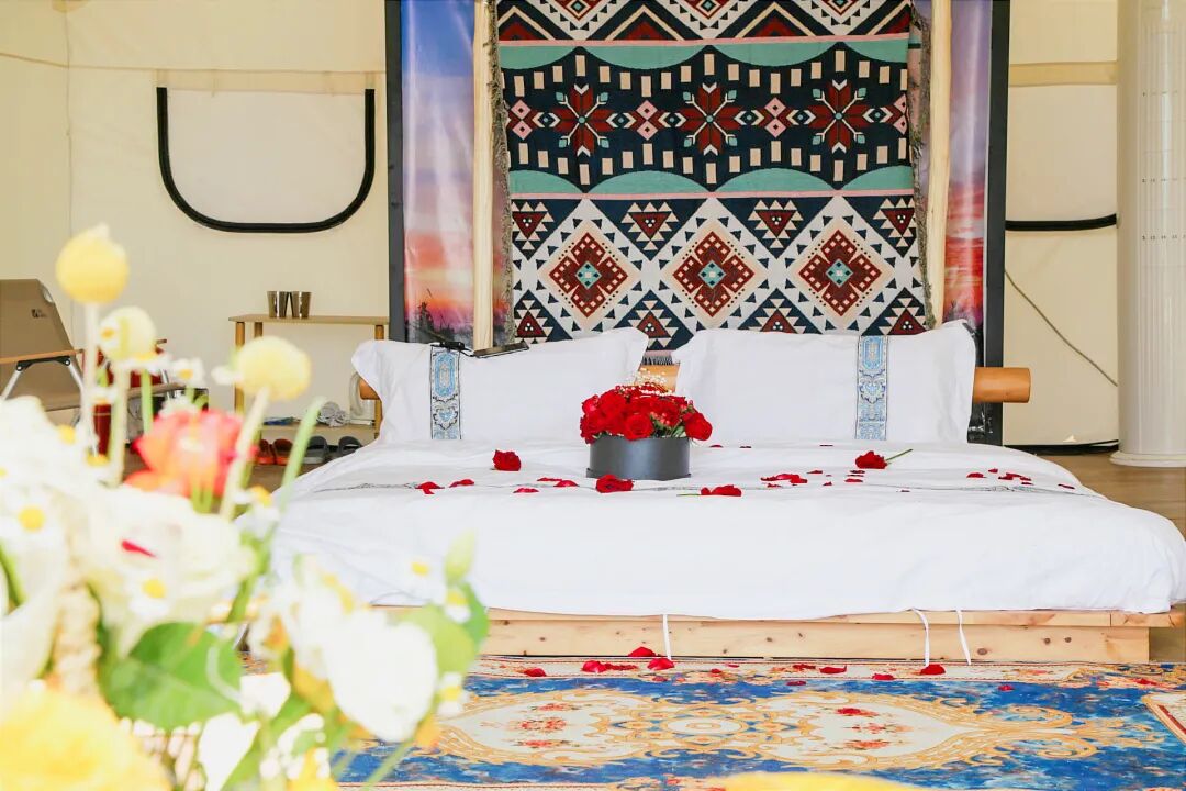 周圍群山湖水環繞,僅設21間帳篷客房