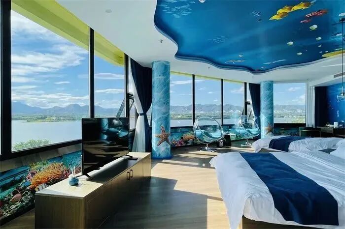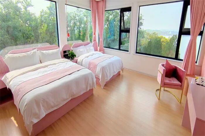 部分房內設有賞景大落地窗,可觀湖望山