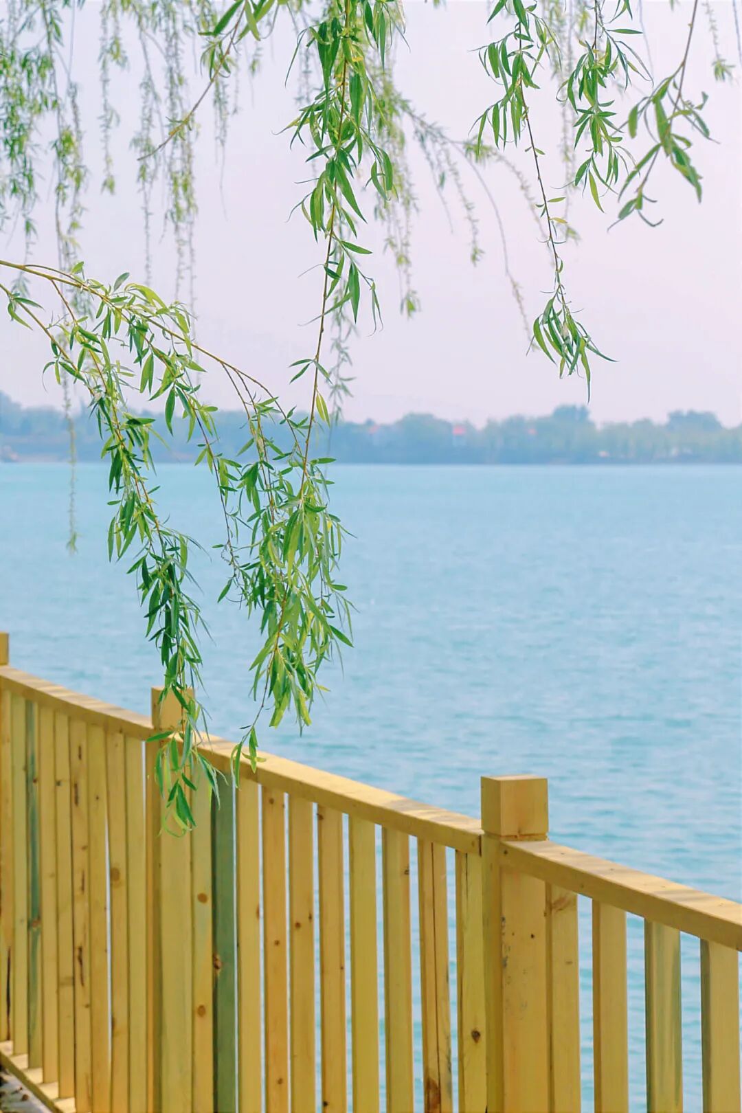 午後陽光灑落下來,湖面盪漾著碎鑽般的光亮