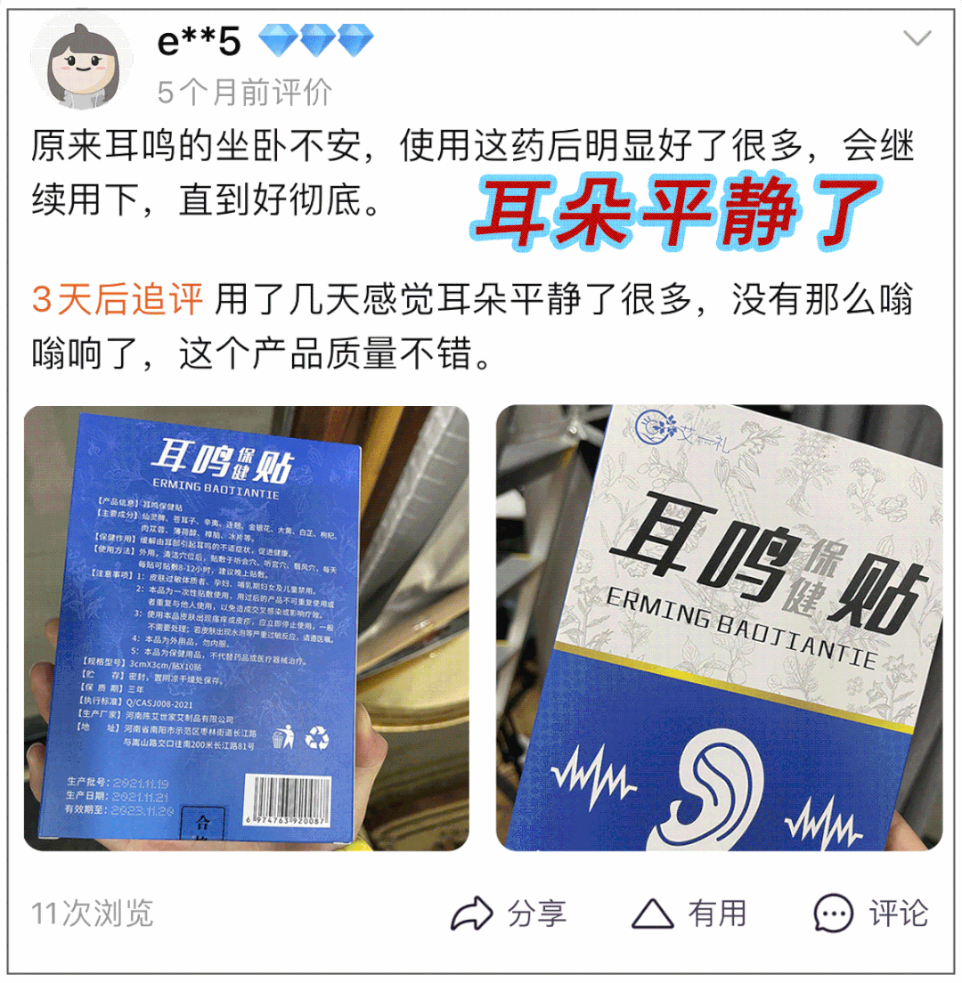 首頁耳鳴不要慌,每天按幾下這個穴位,疏通耳竅,耳朵終於清淨了! 耳鳴不要慌,每天按幾下這個穴位,疏通耳竅,耳朵終於清淨了!作者: Admin / 2023 年 3 月 20 日 我最近發現一種看“似不起眼,卻很折磨人”的頑疾,它就是——“耳鳴”。 說它是“隱形的惡魔”,一點不為過。 也許多數人都跟我當初一樣,認為只有老年人的聽力下降才會發生耳鳴,但其實不是這樣的! 耳鳴不分性別、不分年齡,下到十幾歲的孩子,上到七八十的老人都可能中招! 而且一旦被耳鳴纏上,很難自愈! 長時間放任不管還可能“完全聾掉”!所以醫療界流行這麼一句話:“鳴久必聾,聾久必痴!” 我用自己的親身經歷提醒大家,耳鳴,非常遭罪! 前段時間,我工作上精神壓力過大,一天晚上,耳朵裡突然開始出現尖銳的蟬鳴聲,吵得我一晚上沒睡好覺。 我以為它過幾天就會自己消失,結果3天后更嚴重了,去醫院連著做了1個多月的微波治療,花了上千塊,結果還是沒好轉。 後來朋友推薦了當地很有名望老中醫給我。 他說我這種因身體自身(非外界刺激)而導致的耳鳴,其實可以試試一些中醫穴位療法。 開始的時候我也是一知半解,老中醫就聽了我的症狀、看了舌苔、把了脈。 然後胸有成竹的給我拿了幾盒拿圓圓的小膏貼,讓我回去貼在耳根子後面的翳風穴。 我聽話的貼了3天,發現耳鳴明顯減輕,我真的高興壞了。 又更加有信心的堅持貼了1個月不到,耳鳴就完全消失了! 早知道這個中草穴位貼這麼管用,我就不用吃一堆傷胃還沒用的藥了。 久病成良醫,經過我研究發現,對付耳鳴,其實中醫比西醫更具有優勢,副作用小,複發率低,預後比較好。 而且中醫在耳鳴耳聾方面,已經有了幾千年的歷史。 在我國最早的醫方著作《五十二病方》中,就有詳細記載: 『治耳鳴如流水聲,不治久成聾方』 大黃 辛夷 白芷 連翹 金銀花(各一兩) 肉蓯蓉(五兩)仙靈脾(一升) ,上幾味,以苦酒二升浸一宿,火上煎,三上三下,藥成,去滓,耳鳴耳聾者,綿裹納,敷於耳後根翳風穴。日一易之,不過三日,愈。亦療癢及猝風聾。” 養生老牌艾一禮根據張仲景《五十二病方》的古方,並聯合張仲景國醫國藥學院和72名專家院士,共同研發出了這款【耳鳴貼】。 ↑戳上圖可購買 買二送一,僅需98元,到手三盒 如果我早些知道,就能少造點罪了少花冤枉錢了…. 前陣子我把這個好方法推薦給媽媽的朋友之後,他們沒多久也給我帶來了好消息~ @福建劉女士:耳鳴4年了,每天都睡不好,還經頭暈,心情煩躁,常跟家人吵架。一個老中醫推薦了艾一禮耳鳴貼,第三天就有明顯減輕,貼了3個療程,耳鳴基本消失,整個人的狀態都跟著好起來了。 @江蘇周先生:過渡勞累導致神經性耳鳴,耳朵裡像是有個搞裝修的鑽頭,影響睡眠,聽力下降,還經常頭痛。貼了不到1盒艾一禮耳鳴帖,耳鳴明顯減輕,見效很快! 這款耳鳴貼已經在家族群裡廣受好評啦!馬不停蹄給大家分享,家裡常備著總會安心些~ 而且現在有內部福利價,買二送一!買三送二! 艾一禮·耳鳴保健貼 一貼即通 安享睡眠 原價¥49/盒 福利價¥98元/3盒 ¥149元/5盒 戳下圖即可購買 從艾一禮先祖張氏(清乾隆隨軍大夫)開始,艾一禮就專門為朝廷皇帝、后妃、大臣等提供中藥。 在《 張氏家規首誡》中提出:“尊實效、辨真偽,非御恆之方無以為用,非親身試之必不敢出”。 訓誡後世子孫,必須是被無數次證實有用,而且自己親身試用過的方子,才會給別人用。 張仲景國醫國藥學院,也已經有超過百年的歷史,師資隊伍和研發團隊在國內數一數二,在中醫領域成就卓越。強者聯合,必出精品! 艾一禮耳鳴貼融合了仙靈脾、蒼耳子、辛夷、連翹、大黃、白芷、金銀花、枸杞、肉蓯蓉等12味珍貴草本,古法熬製而成。 貼於“耳疾萬能穴”翳風穴,相當於藥物直接作用於病灶,靶向給藥。快速促進耳部血液微循環、修復受損耳神經,消除耳鳴。 拿到手,就能聞到一股濃厚的草本香氣,別看它小小一貼,可是濃縮了12種珍貴中藥草本,藥效更集中、更快速。 中醫認為,耳鳴耳聾多為氣滯血淤,耳部經絡被淤血所阻塞,腎氣不足,清陽之氣不能上達於耳竅。 使得耳部的正常生理功能減退,從而發生耳鳴、耳聾,聽力減退。 艾一禮耳鳴貼採用傳統中草藥穴位敷貼療法,能快速疏通經絡,溫腎固陽,促進耳道內毛細血管的微循環。 使氣血順暢、經脈貫通、陰陽平衡、耳神經和精元得到快速滋養和修復,從而有效調理耳聾耳鳴,恢復聽力。 像常見的神經性耳鳴、血管性耳鳴、噪音性耳鳴、混合性耳鳴、頑固性耳鳴等,都可以用它調理,不出2周,耳鳴即可明顯減小。 艾一禮耳鳴貼的效果是經過檢驗的。 能夠修復受損耳神經,徹底改善神經性耳鳴、急性耳鳴等,耳朵裡不再有各種刺耳煩人的噪音,聽力明顯恢復了! 很多人貼了之都有不錯的反饋: “耳鳴帖真管用!” “貼了2天耳朵裡嗡嗡聲小了,聽聲音清楚了!” “已經第3次回購了,感覺效果很不錯!” 艾一禮·耳鳴保健貼 一貼即通 安享睡眠 原價¥49/盒 福利價¥98元/3盒 ¥149元/5盒 戳下圖即可購買 耳鳴的聲音有很多種,比如:尖銳刺耳的金屬聲、蟬鳴聲,樹葉的沙沙聲…嗡嗡嗡的飛機聲…… 耳朵裡像養了一窩蜜蜂,時時刻刻響個不停,吵得頭昏腦漲,聽不清別人說話。 中醫認為:“竅發於耳”,耳鳴大都是耳脈於堵造成的。 只要疏通一處,就能除耳鳴、防耳聾。它就是——翳風穴,是耳鳴耳聾的“命穴”。 《百證賦》中記