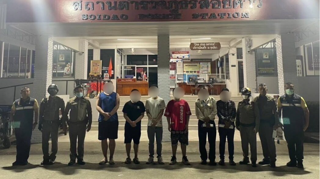 3月16日尖竹汶府移民局指派警察,與調查人員一起逮捕了兩名泰國國民和四名中國人。