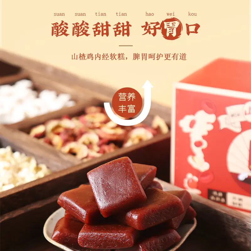 山楂雞內金軟糕不添加防腐劑、香精和色素,每一口都是食材的本真原味!