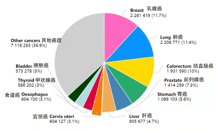 世界衛生組織國際癌症研究機構發佈的2020年全球癌症負擔相關數據顯示,乳腺癌的新增人數達到226萬肺癌的新增人數為220萬。