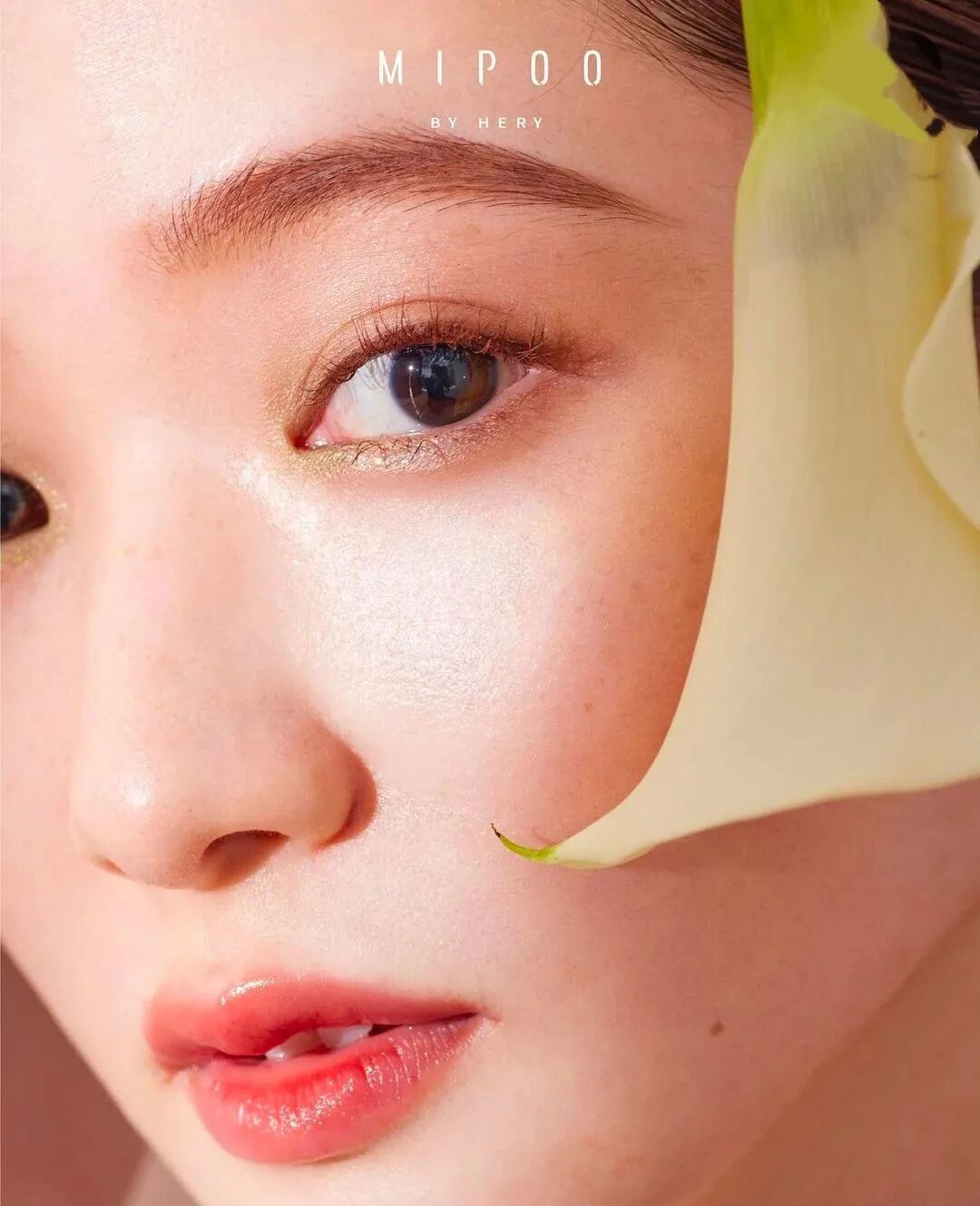 底妝清透白皙但不假白,透著氧氣感。眼妝的部分並沒有特意用粉色系眼影打造,反而用暖棕色來提神(這個顏色畫重點!!)。
