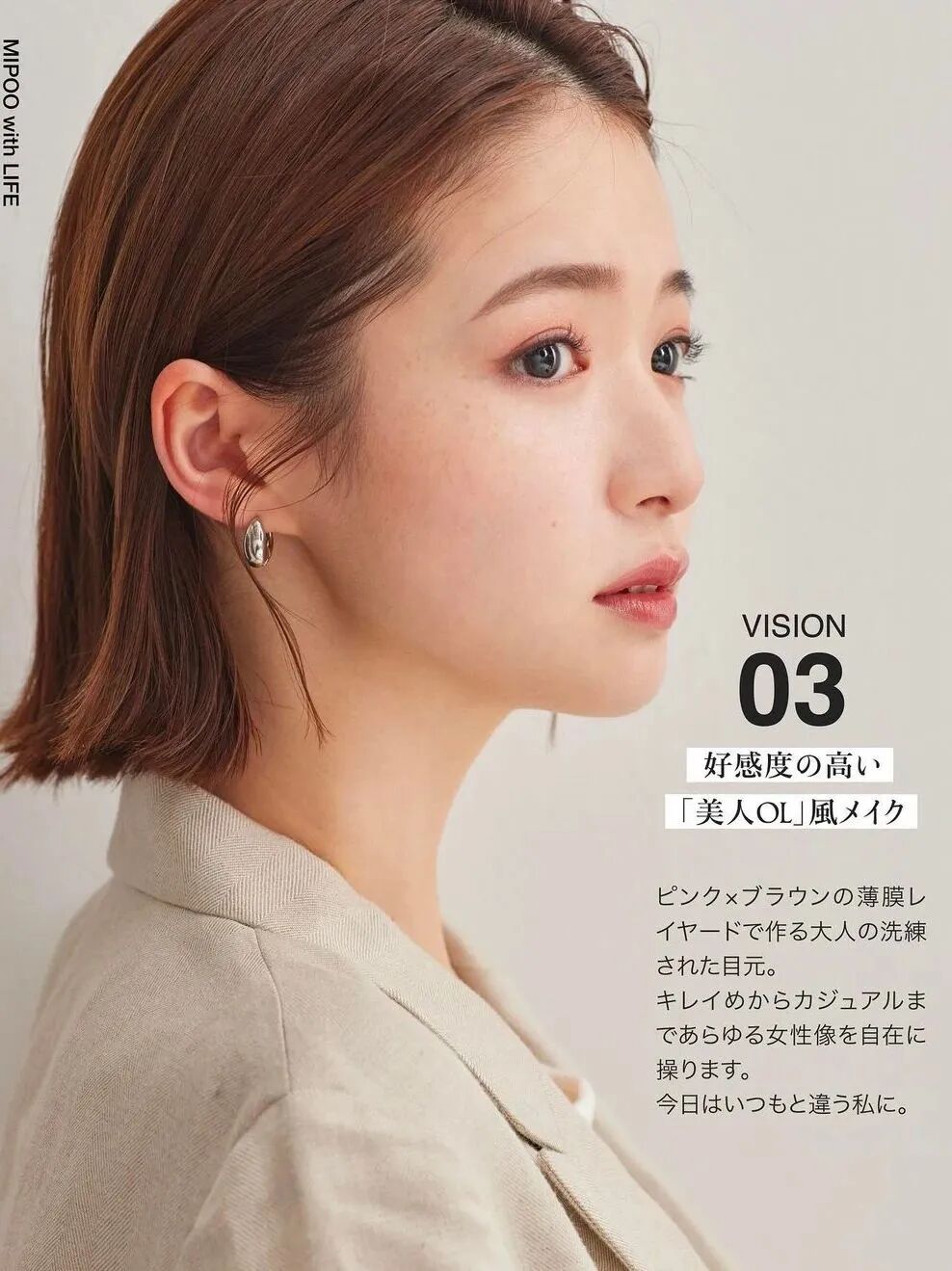 底妝一定是輕薄且乾淨透亮的,求的就是一個“自然”。不會過分強調眼妝的部分,用飽和度低的眼影清掃消除腫眼泡即可。唇妝和腮紅可以輕微點綴,儘量降低全臉的色彩明豔度。