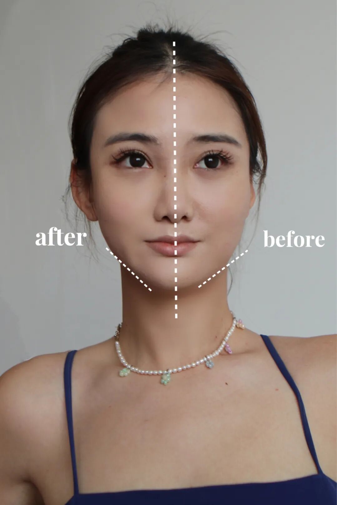 給大家看下即時效果,只做了半張臉之後是這樣的,因為我是很容易浮腫、垮臉的人,所以效果還挺明顯的,法令紋減輕,輪廓更緊緻提升。(當然實際效果也會因人而異,每天的自己也都不一樣,還是需要大家自己體會)