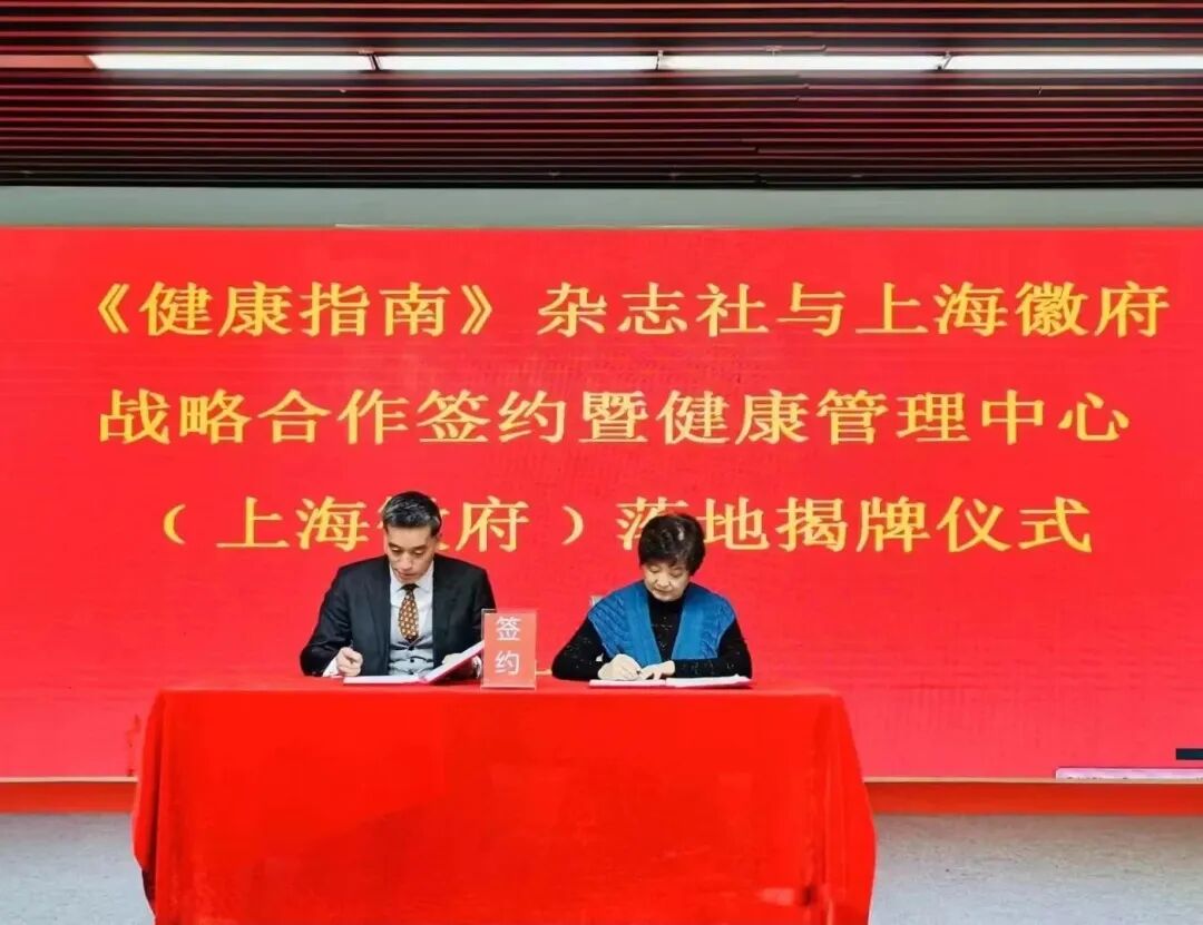 2023年3月20日上午,《健康指南》雜誌社與上海徽府實業(集團)有限公司戰略合作簽約暨健康指南健康管理中心(上海徽府)落地揭牌儀式在上海舉行。
