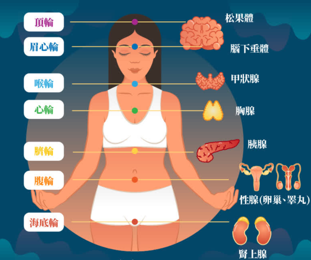 人體有“三脈七輪”,脈輪是人體能量的中心,所謂能量中心,即氣能、血管、神經叢、五臟六腑聚集的地方。