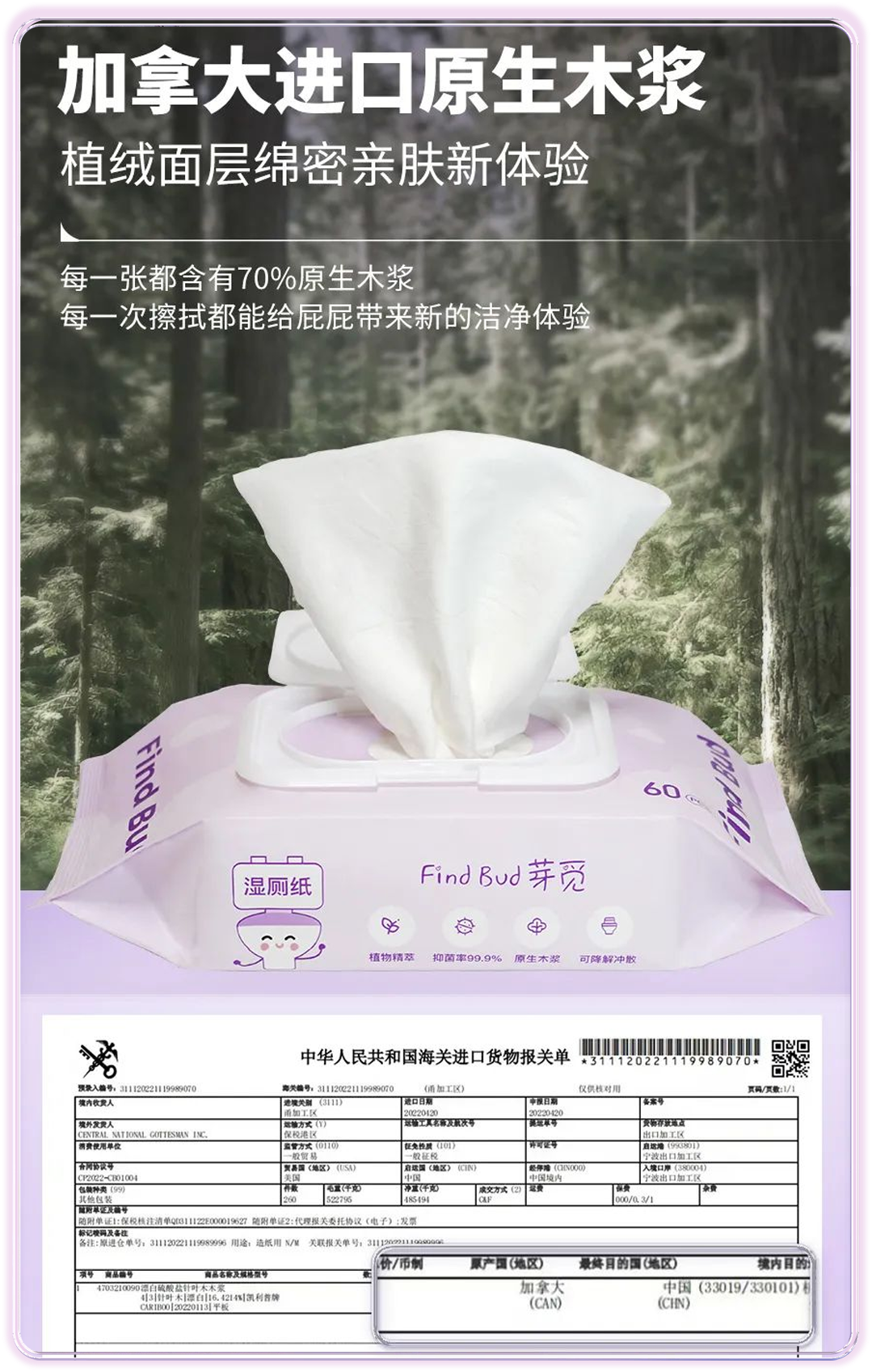 芽覓家的溼廁紙,全部採用加拿大進口原生木漿,綿軟親膚,擦起來非常溫柔~