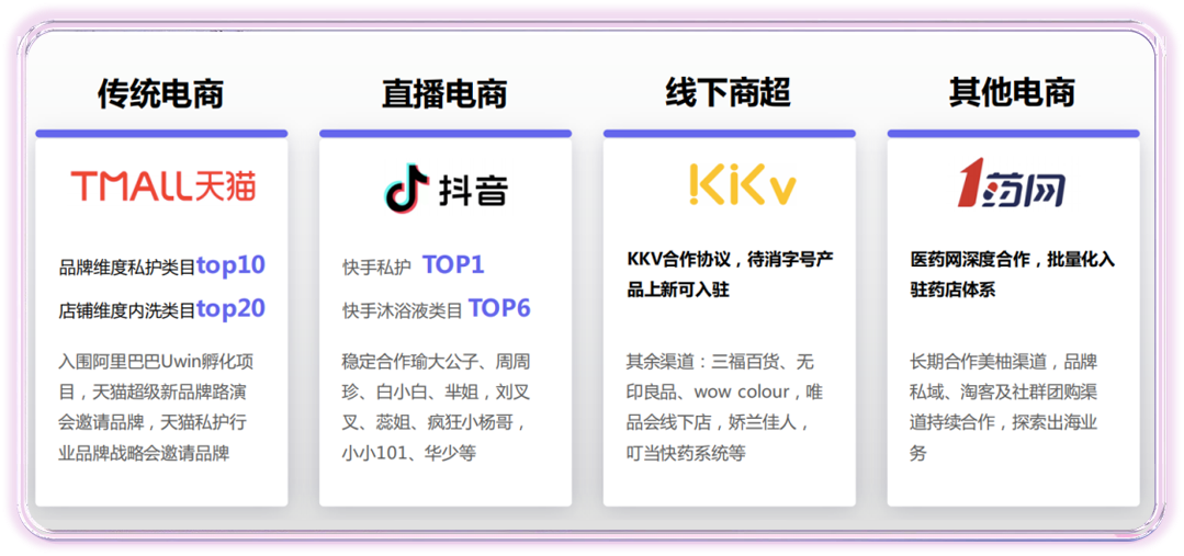 憑著強大的品牌實力,它已經成為國內增長最快的私護品牌。線上平臺天貓、抖音、線下商超都能看到它。