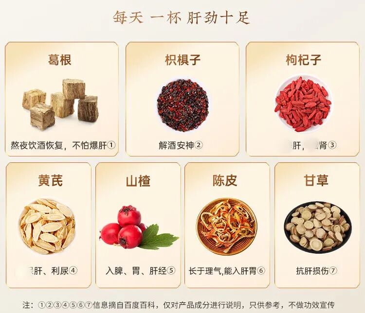 食材:葛根、枸杞子、生山楂、決明子、綠茶、桑葉、菊花