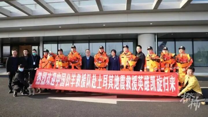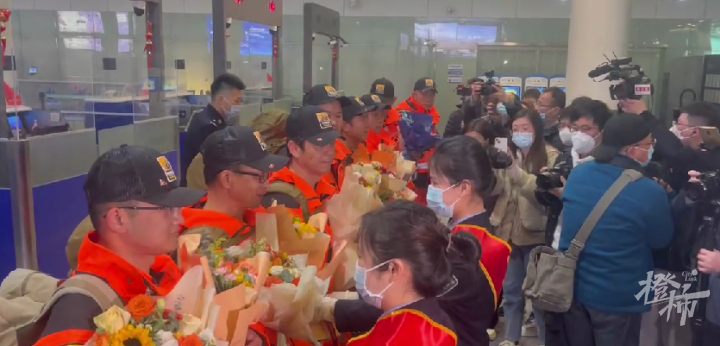 前天下午,來自浙江、也是全國第一支赴土耳其救援的社會救援力量——公羊救援隊7名救援隊員抵達蕭山機場,等候的人群中爆發出掌聲,有趕來給朋友接機的市民送來了鮮花,她的朋友和公羊救援隊搭乘同一航班,得知後,她特地準備了鮮花。