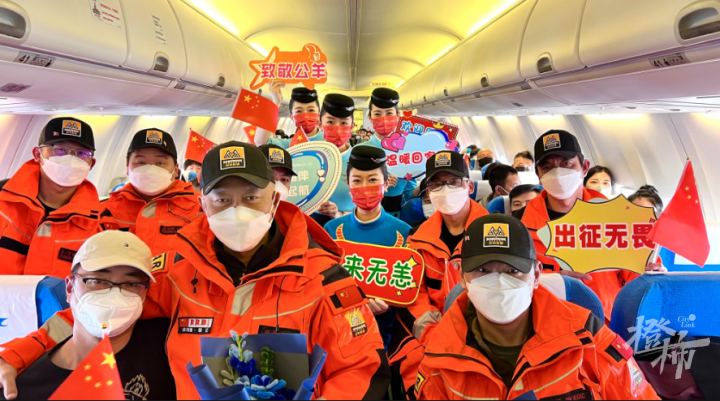 “是你們彰顯了同舟共濟、眾志成城的中國擔當,勇敢的公羊勇士,你們辛苦了!”路上,乘務組以特別的機上廣播向救援隊致敬,所有乘客都為他們鼓掌。