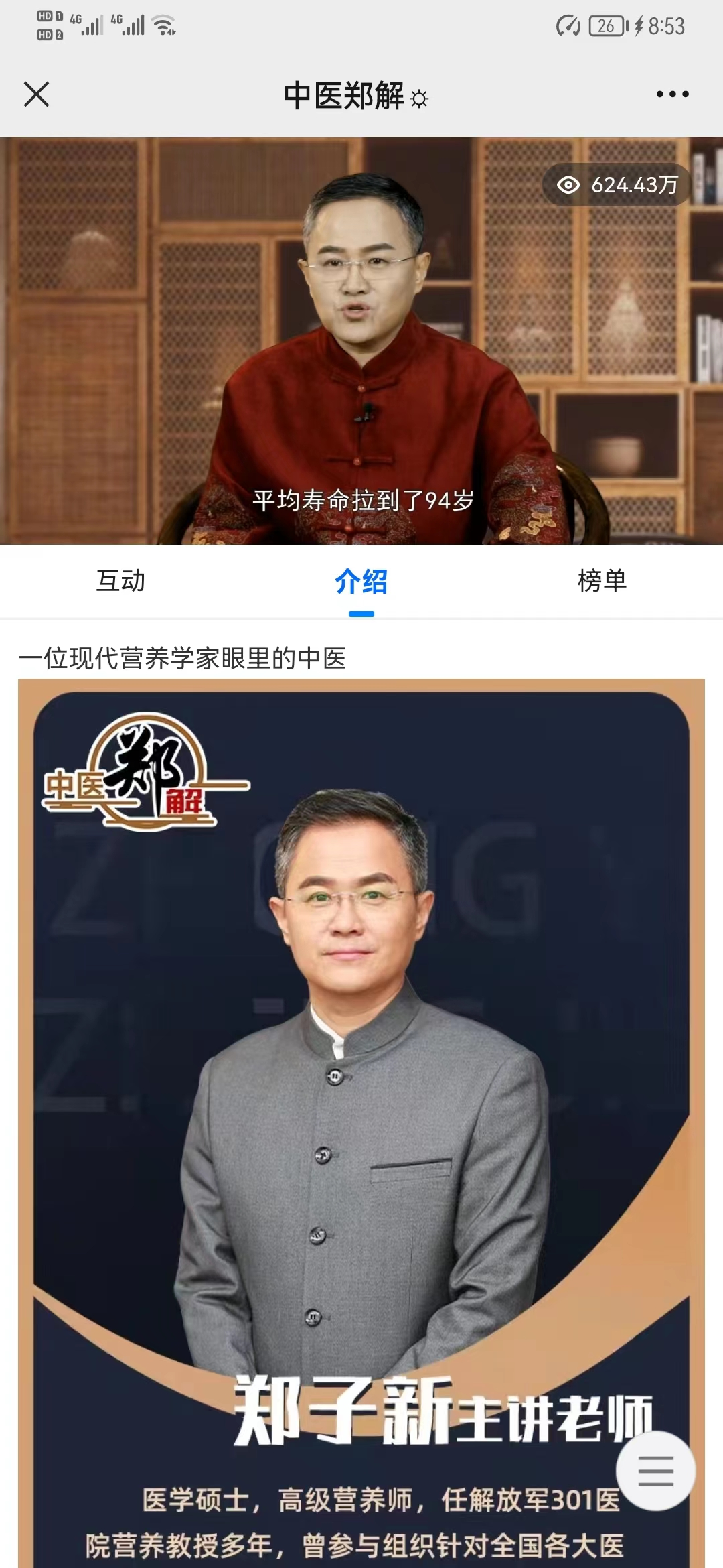 即日起除了本公司會員外,未來健康大講堂 ,也在群內為各位朋友免費開啟:由解放軍 301 總醫院醫學營養學教授、國內頂級健康專家:鄭子新 教授主講的大型健康養生節目《養生新說》日在線學習人數超百萬人!