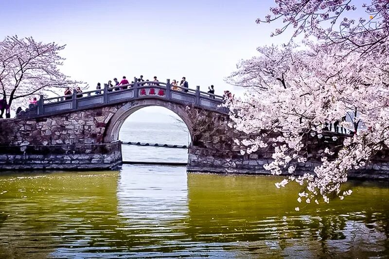 島上有道教仙宮和道、佛兩教石窟塑像,還有諸多古蹟和舊時名流顯貴所建的私家園林。可以遊覽園林群、泛舟太湖、品賞櫻花,體會郭沫若所贊“太湖佳絕處、畢竟黿頭渚”的意境。每年3月中旬至5月初舉辦黿頭渚國際櫻花節,推薦櫻花谷、充山隱秀、長春橋一帶踏青賞櫻。