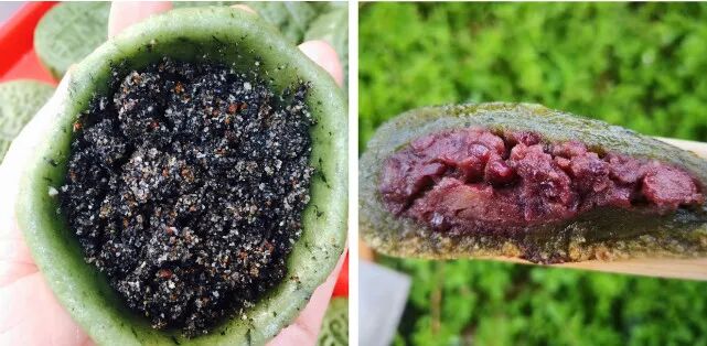 ▲芝麻餡兒(左)和豆沙餡兒(右)
