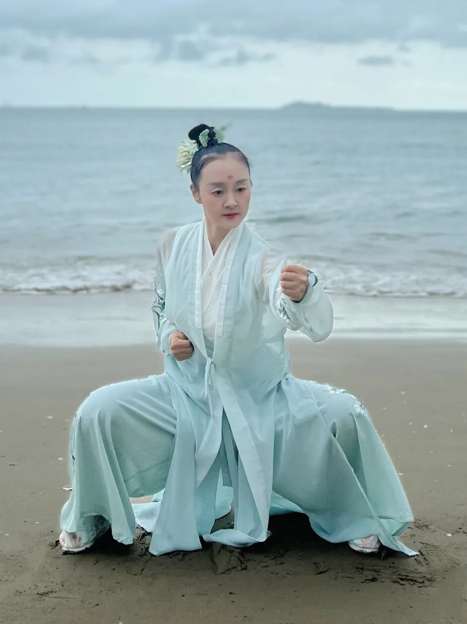 一般在開始練習時會心有雜念,注意力不專注,不能收心、入定。後來她將思緒盡力都集中在動作上,即做到“當眾孤獨”,只注意自己,考慮接下來每個動作要點,“以一念代萬念”的方法讓自己形成習慣,頭腦中的那些小念頭也就自然驅散了。後來只要八段錦起勢開始,內心便無比安靜。風動、影動、形動,唯此心不動。