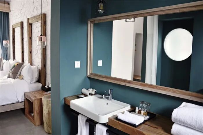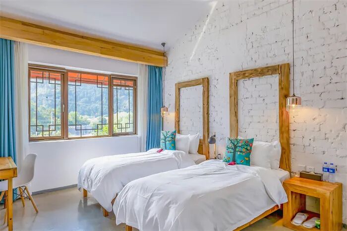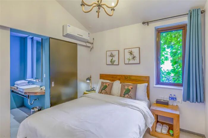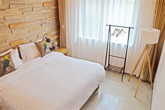 客房的佈置簡潔明朗,色調統一,暖光營造氛圍,打造濃濃的拙樸風。