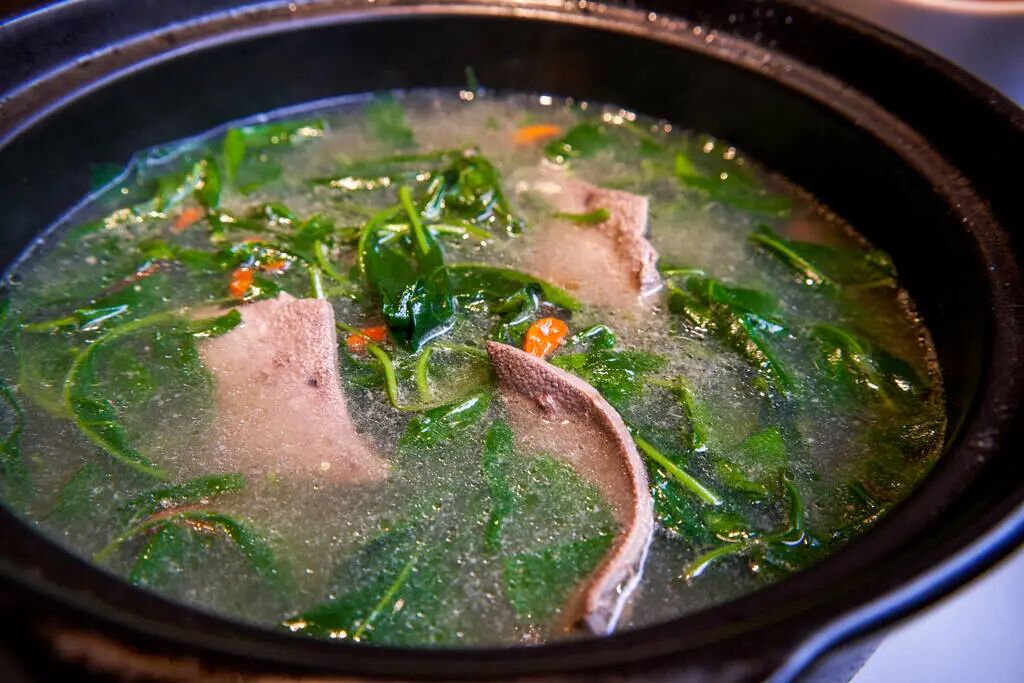 做法:將豬肝洗淨,切成薄片,用豆粉調拌後置油鍋炒熟,剷出備用;枸杞葉、桑葉洗淨後入鍋,再加水,旺火煮沸後將加入炒好的豬肝,改文火煨半小時,加食鹽調味後即成。