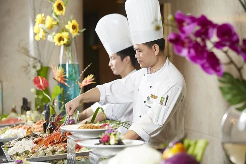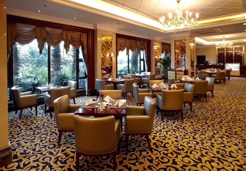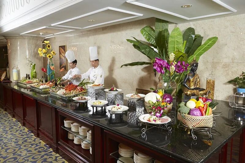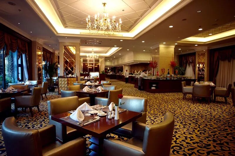 位於主樓一層,自助式餐廳,乾淨明亮的開放式廚房,獨具特色的朱古力噴泉,悠揚抒情的現場鋼琴演奏,讓人沉浸於安逸、輕鬆的休閒氛圍。