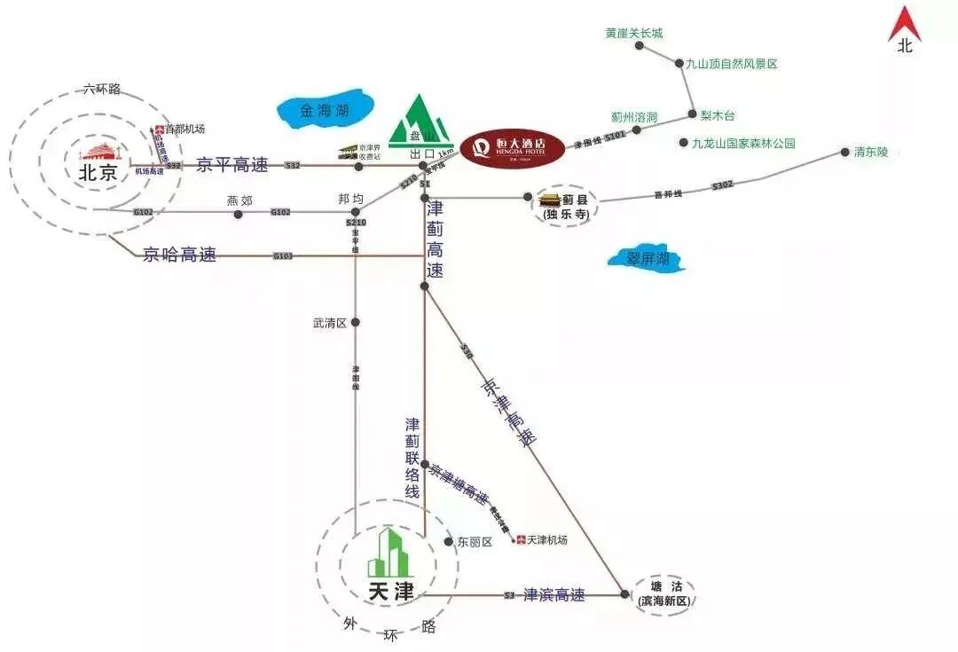 自駕信息:沿京平高速行駛,導航搜“天津薊縣恒大酒店”