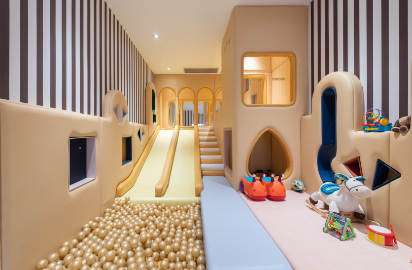 專為0~2歲寶寶⽽設的全軟包活動區域,所觸皆柔軟,進⼝益智玩具,玩樂探索中啟發寶寶的五感,安全呵護成長。