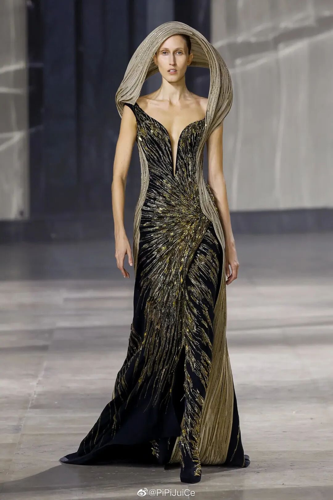 搭配模特優越的頭身比,演繹出瞭如異星戰域的女王氣勢。