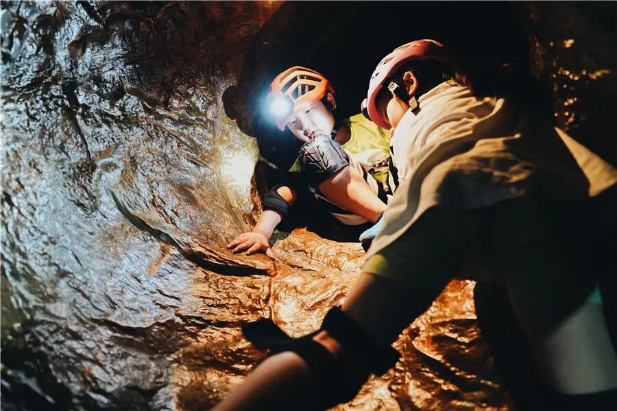 探洞2區:緊鄰迷宮區的三條線路,第一條化石科普線,主要為生物考古方向;第二條極限擠壓,狹窄的通道,增加了旋轉門和蛛網門,提升了線路的難度;第三條是冰雪奇緣,主要是以尋寶為主題,洞內增設切面海洋球池可以拍照呦。