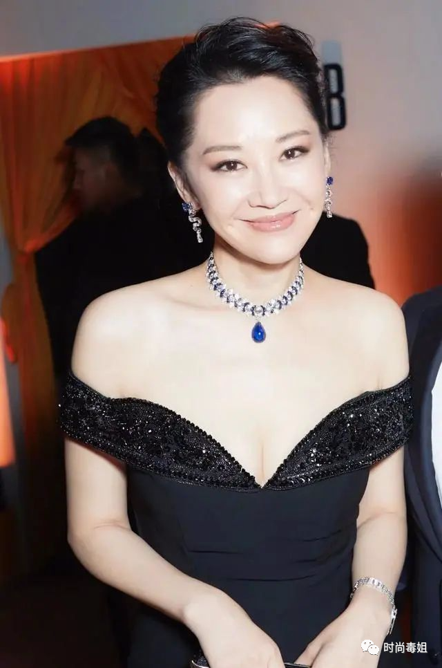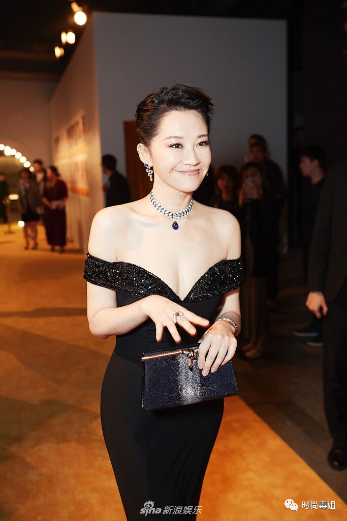 許晴除了身段好,頭身比例也是相當出色,任何服裝造型都可以輕鬆駕馭。所以她的每一次出場造型都會備受關注,而在某次活動上,許晴也是一如既往地讓人眼前一亮。這次的她穿著一襲黑色的抹胸禮裙,V領設計露出潔白無瑕的肌膚,展示精緻的鎖骨以及完美的頸肩線條,整個造型十足的名媛氣質,近鏡頭下也看不出她半點老態,這保養功底也太深厚了吧!