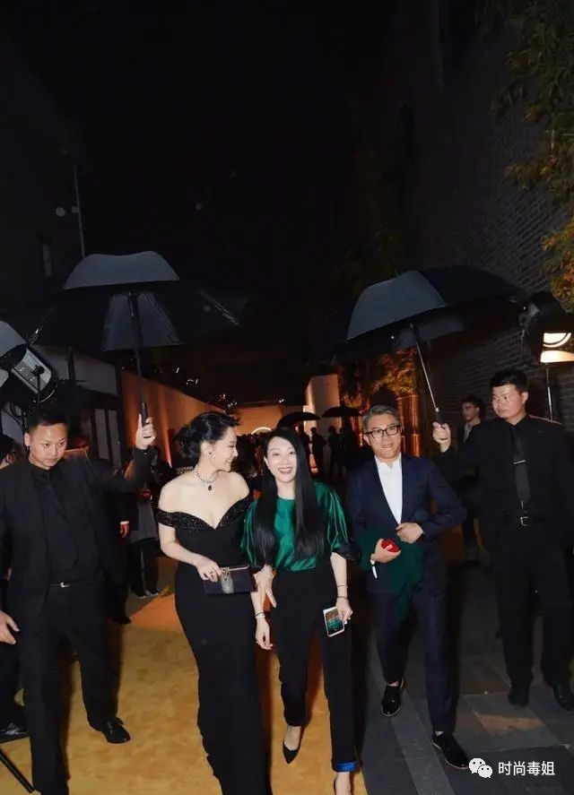 這件黑色落地長裙非常適合許晴的氣質,上半身採用了露肩的設計,抹胸的款式宛如盛開的花瓣,襯得她的臉部更顯精緻小巧。直角肩相當吸睛,手臂線條也是絕美,完全看不到一絲贅肉,這身材跪了!