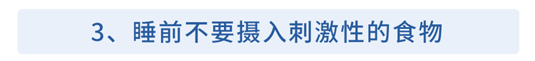 睡前不喝刺激性飲料,例如濃茶、咖啡等等。少吃高脂肪的食物,不利於消化影響睡眠。