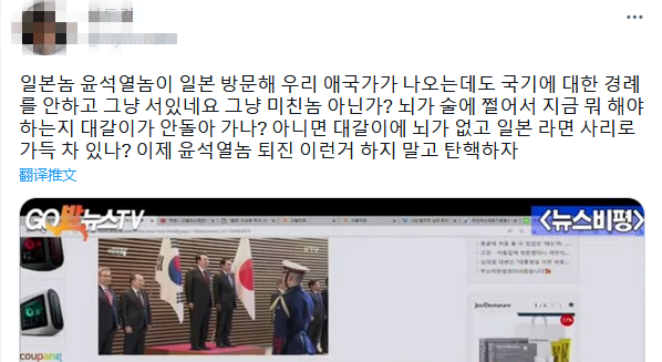 最近的一段尹錫悅訪日視頻,韓國網友痛罵向日本國旗鞠躬的尹錫悅