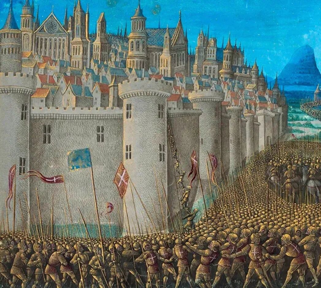 《十字軍圍攻安條克》 泥金裝飾手抄本。作者/讓·科龍比,來源/法國國家圖書館