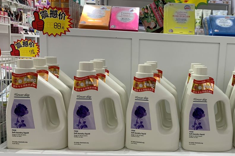 這個花卉詩洗衣液親水性很強,簡單漂洗就融進水裡了,不會殘留在衣物上。