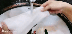 靜置泡3-5分鐘後輕輕揉幾下,醬油汙漬輕鬆洗掉,都不用使勁地揉搓!