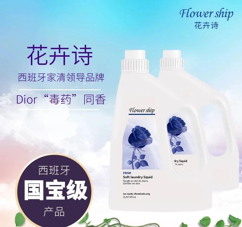 別看這個Flower ship花卉詩看著眼生,人家可是西班牙國民清潔品牌,約70%的西班牙家庭都在用它洗衣服!
