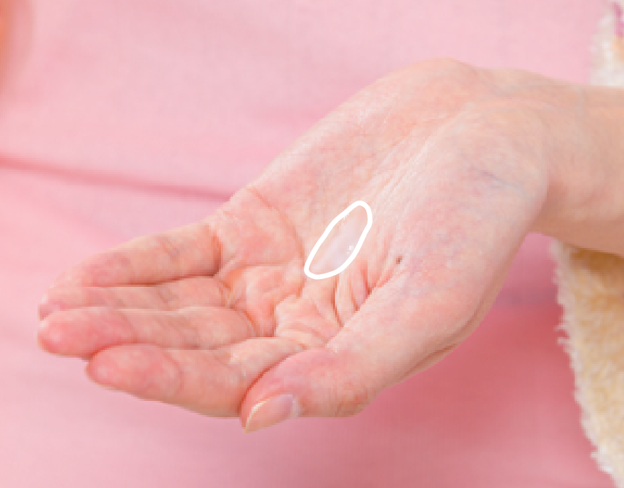 取出適量護手霜,放在手掌,兩手合併溫暖一下。