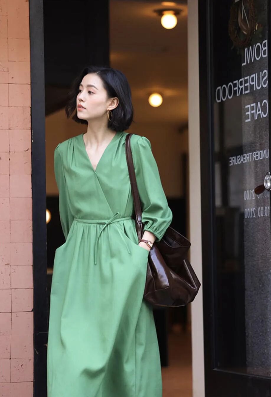 很難形容這種綠色,像是油畫裡的綠,穿到身上,好像盎然綠意在周身層層漾開(也不挑人),感覺自己也成了畫中人。