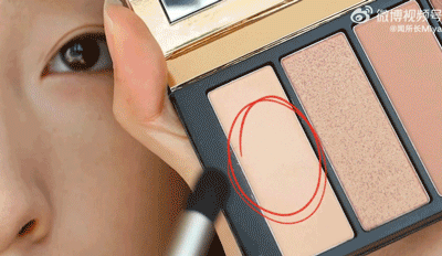 畫的時候先取眼影盤中的裸色進行大面積打底;