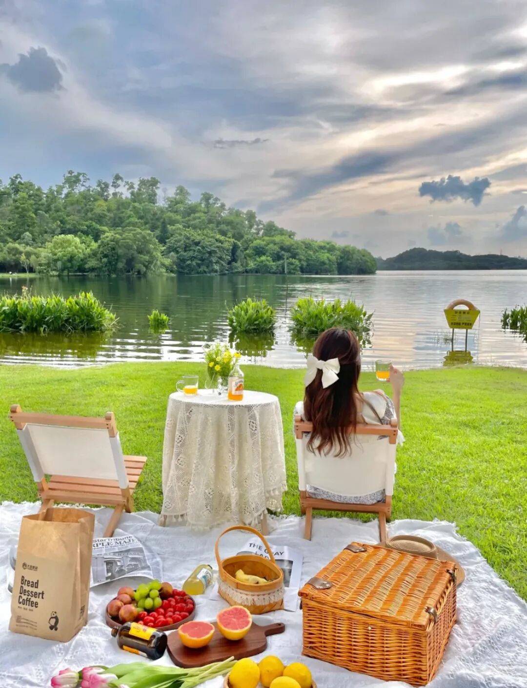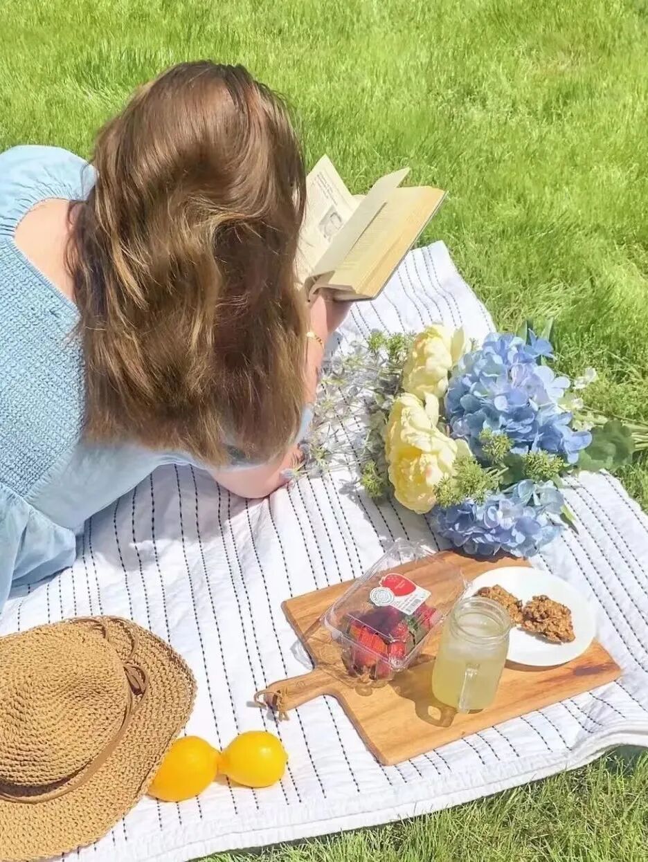 比如說顏色鮮亮的野餐布、高顏值的食物和鮮花等,雖說不是必需品,但想要拍出郊遊氛圍感,沒它們真不行!