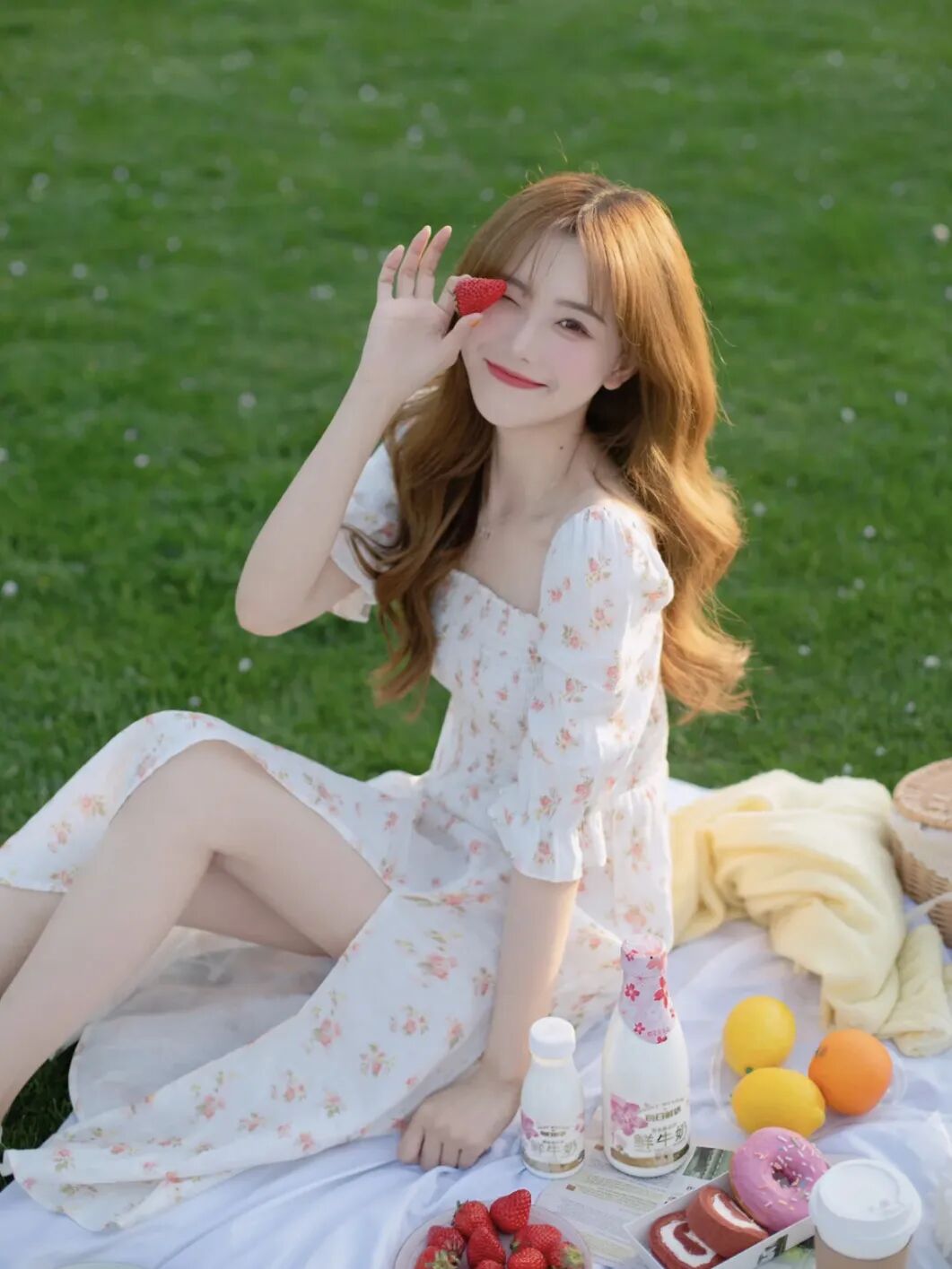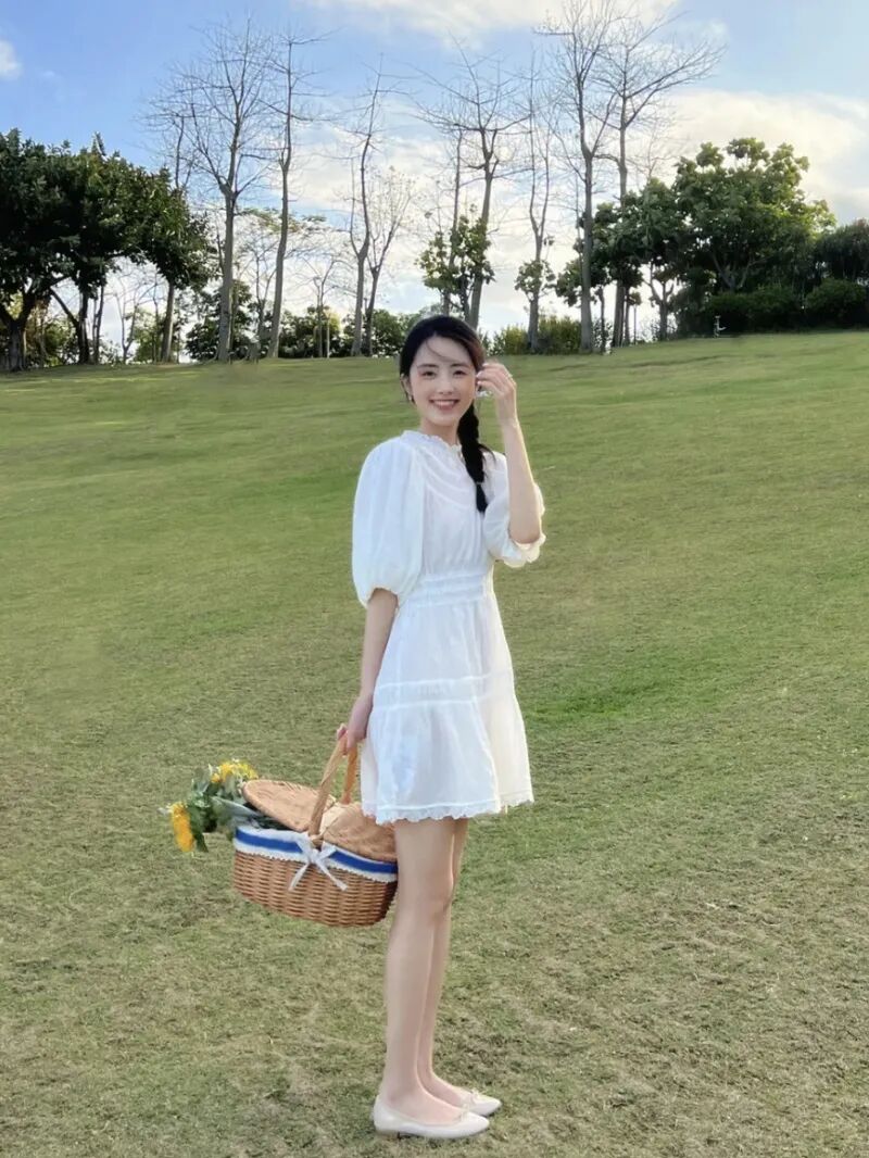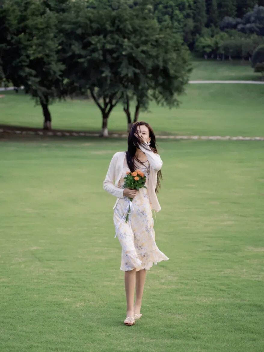 既然是郊遊照,裙子的適配度肯定是最高的,可以很好地和背景融為一體,簡簡單單就能拍出浪漫清新的氛圍感。