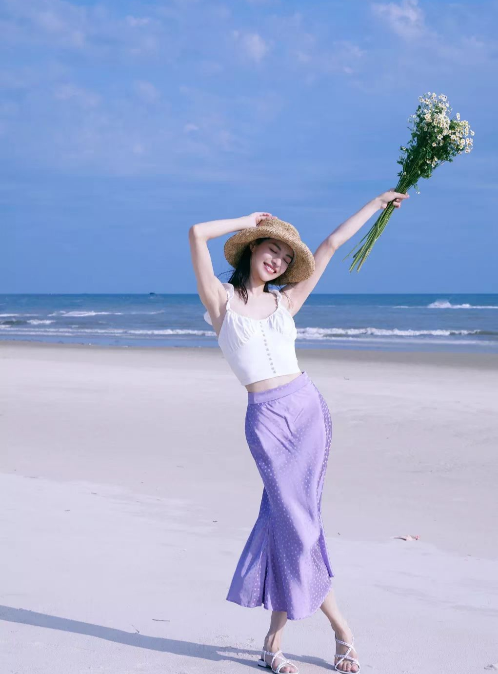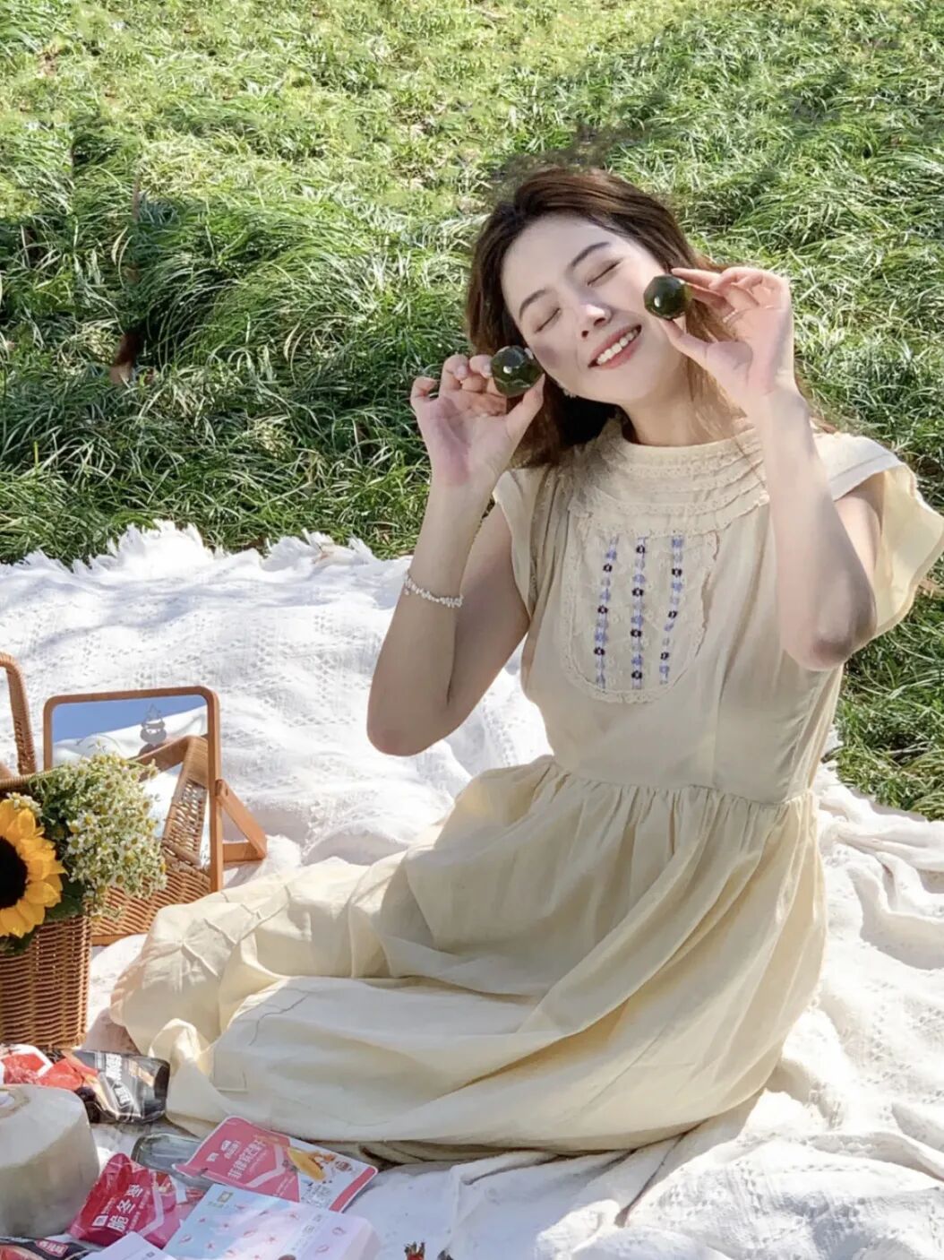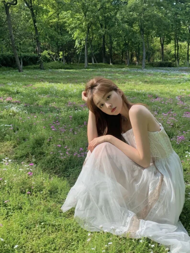 既然是郊遊照,裙子的適配度肯定是最高的,可以很好地和背景融為一體,簡簡單單就能拍出浪漫清新的氛圍感。
