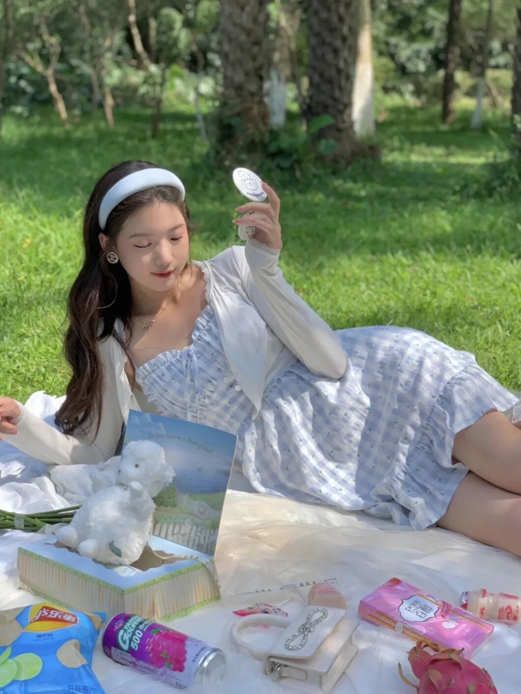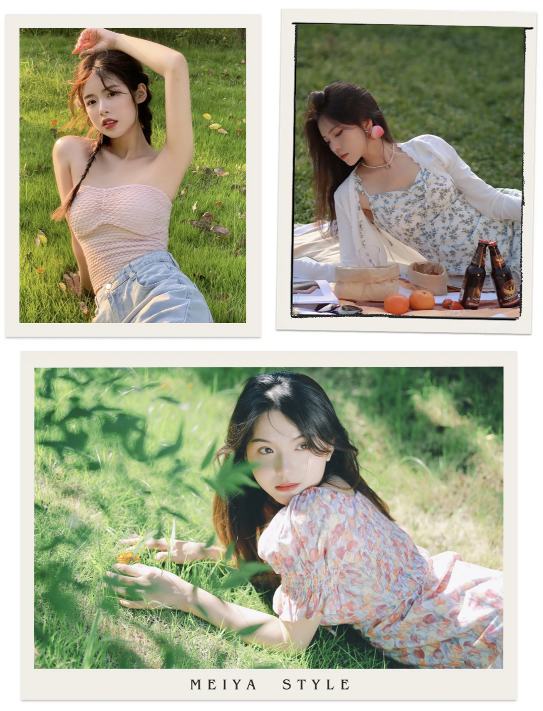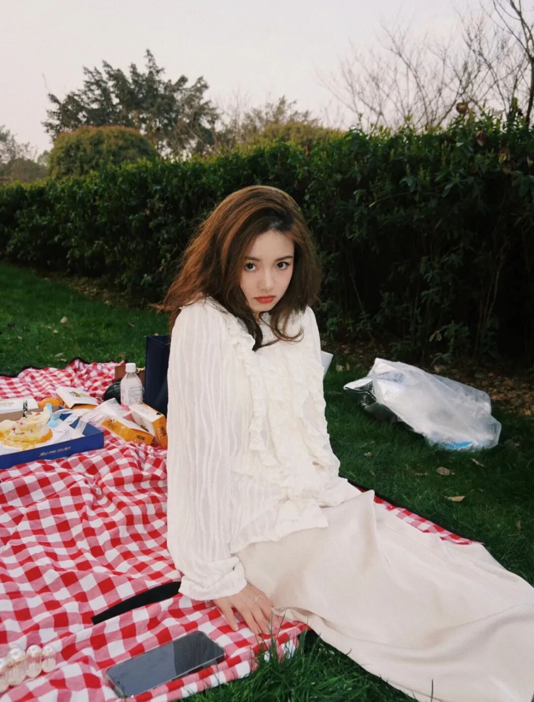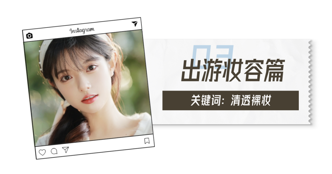 為了貼合春夏郊遊野餐的清新氛圍感,妝容部分不太建議化大濃妝,清透自然的少女妝容會更自然出眾。
