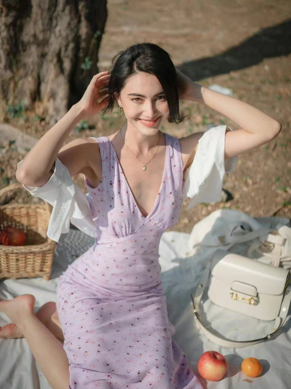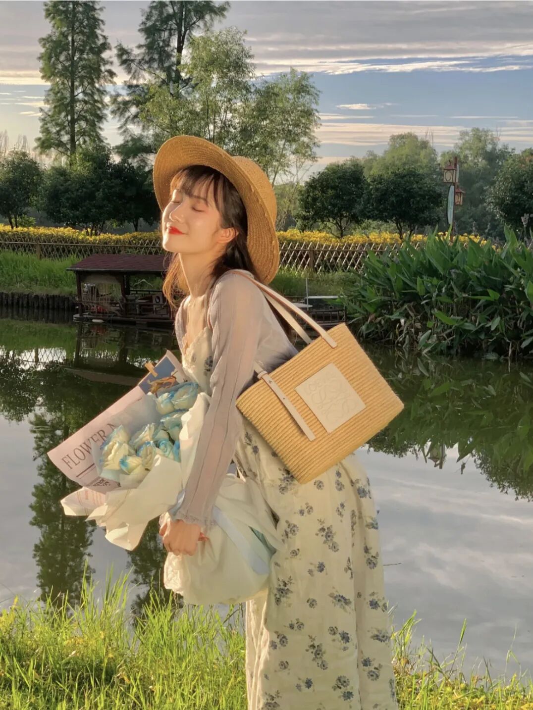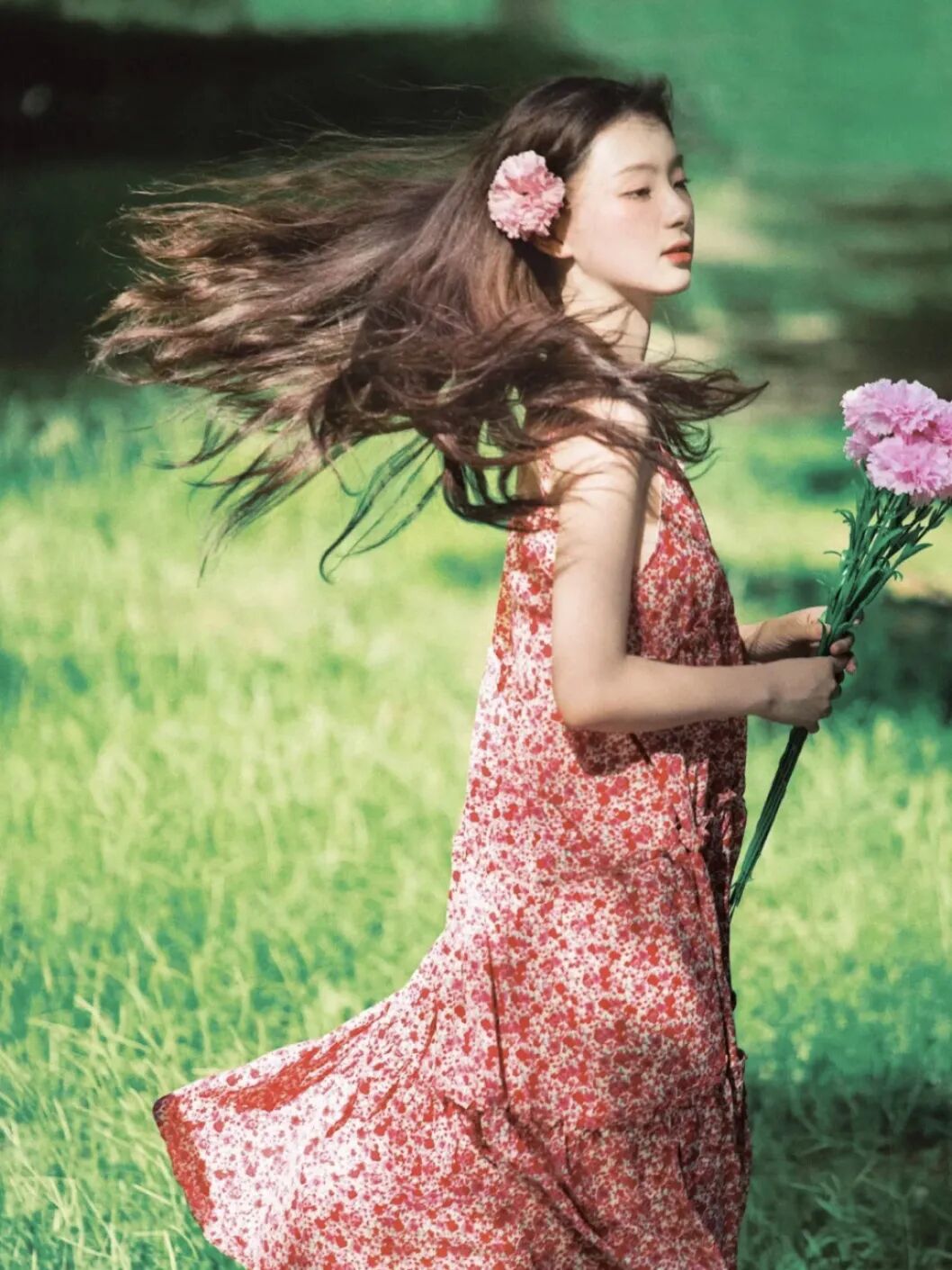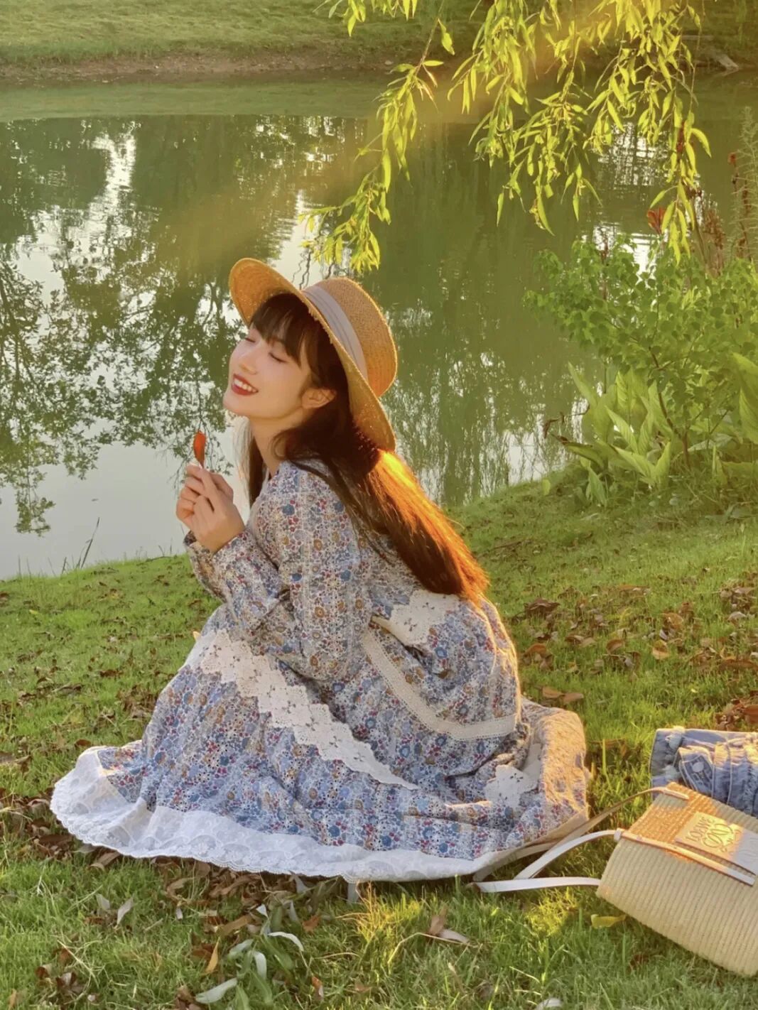 不過需要注意的是,郊遊的氛圍整體是偏清新的,如果碎花裙顏色過深,和環境就不是很搭了,拍照時也容易突兀。