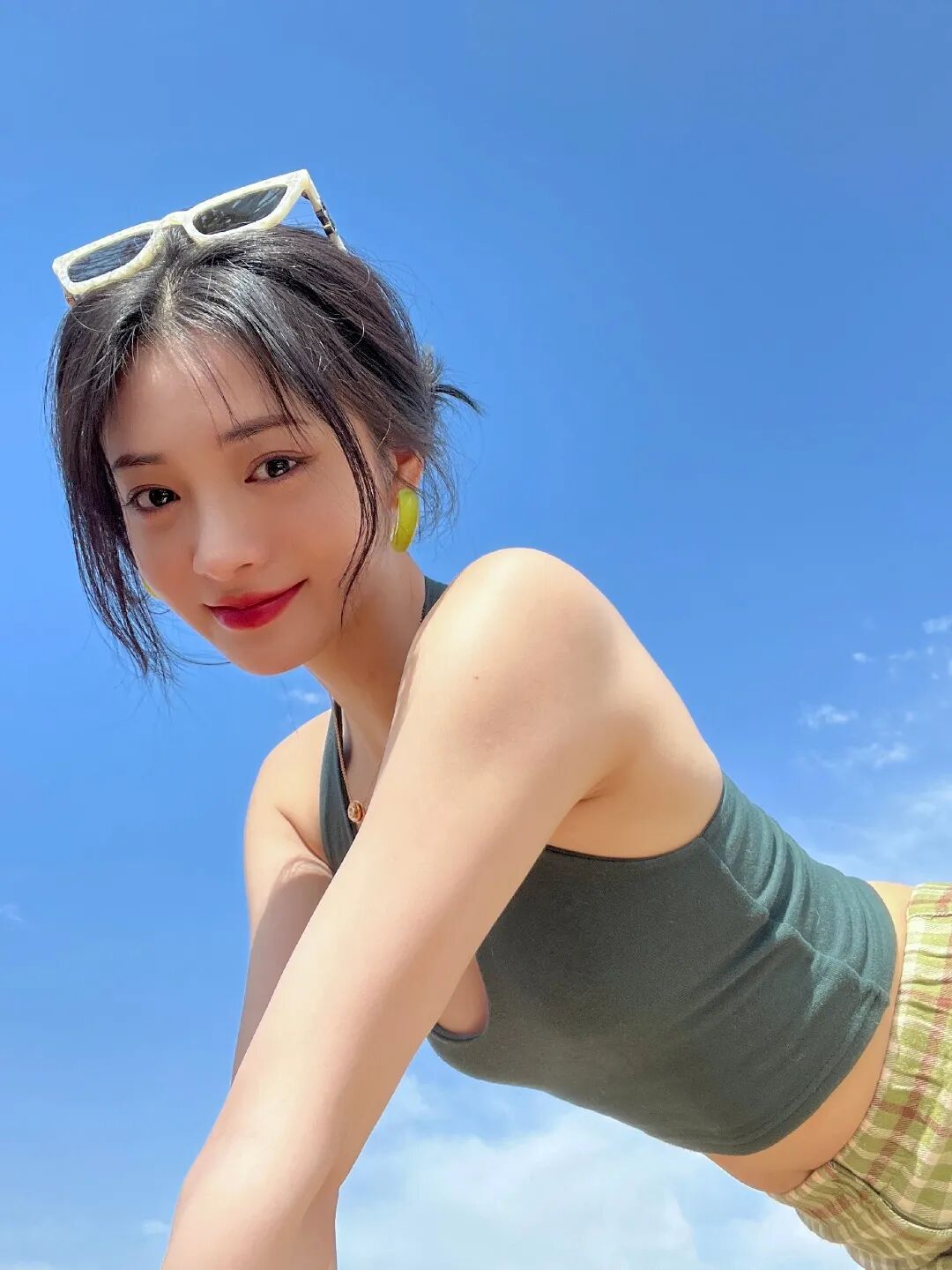 亮色系的裙子在藍天白雲的映襯下真的超亮眼,整個人也顯得明媚元氣,