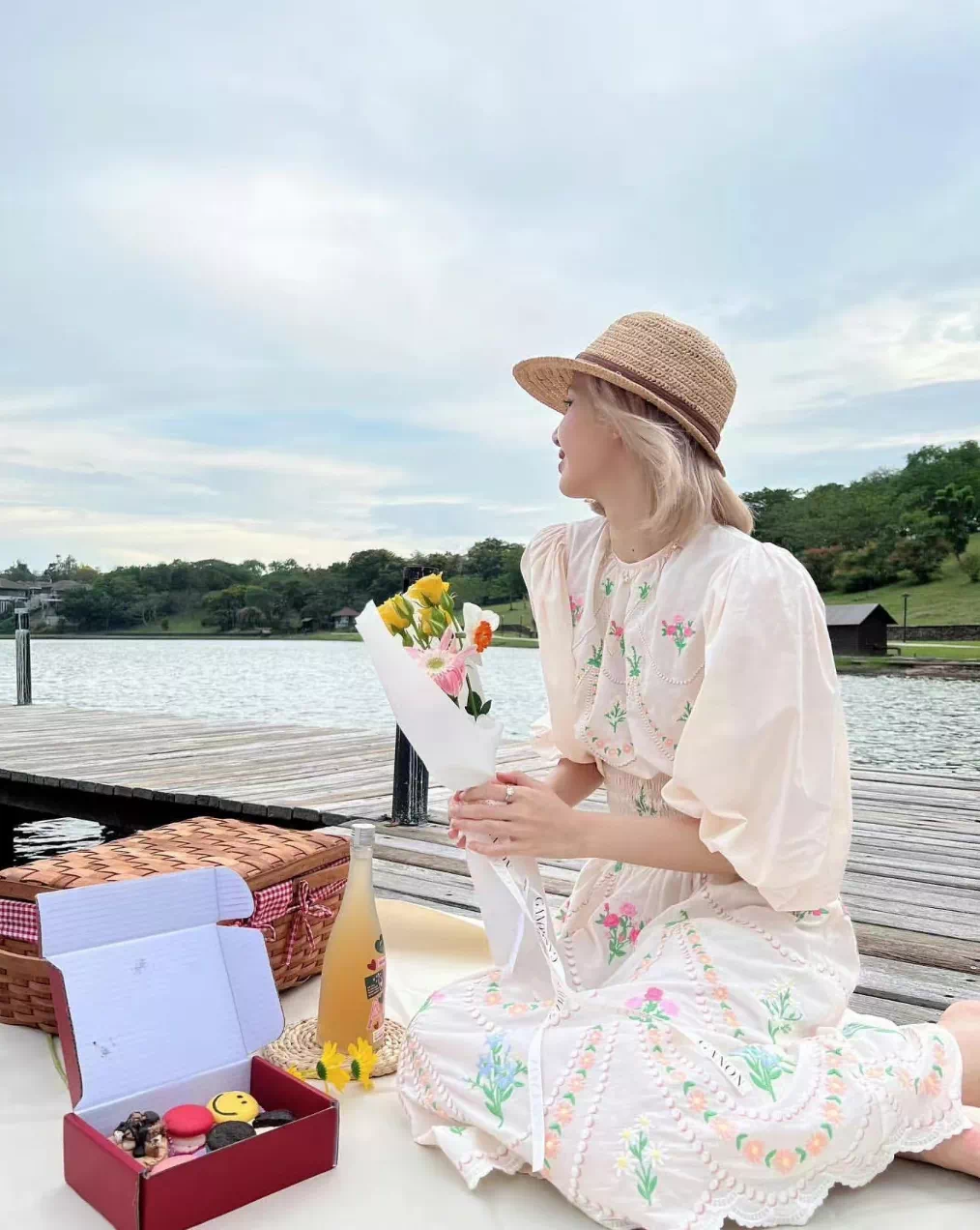 Lisa之前和朋友野餐時就pick淺色系的碎花裙。
