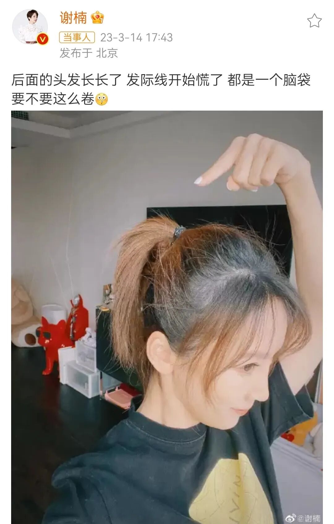 不過前倆天,謝楠發微博曬了自己的長髮造型⬇️