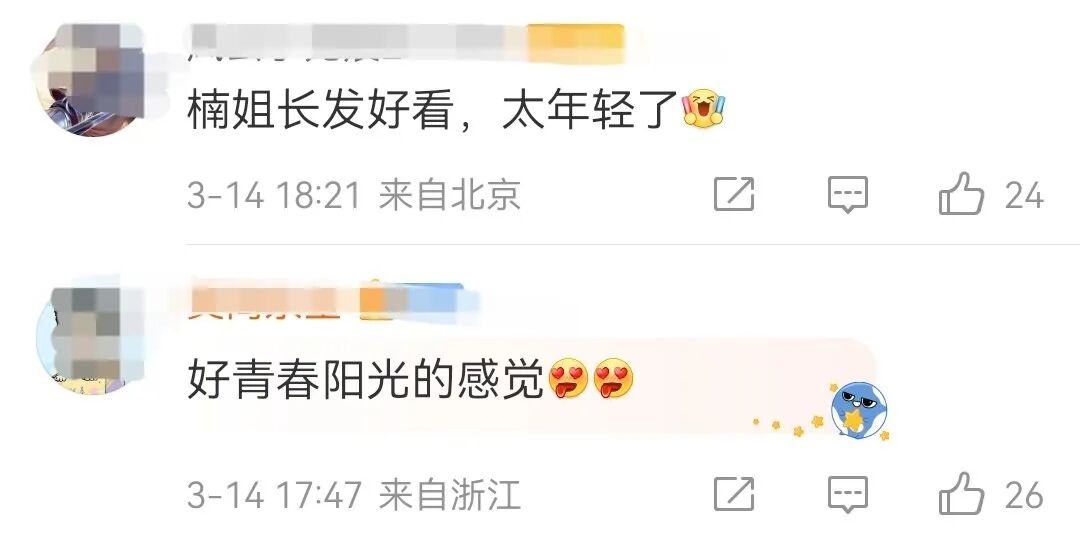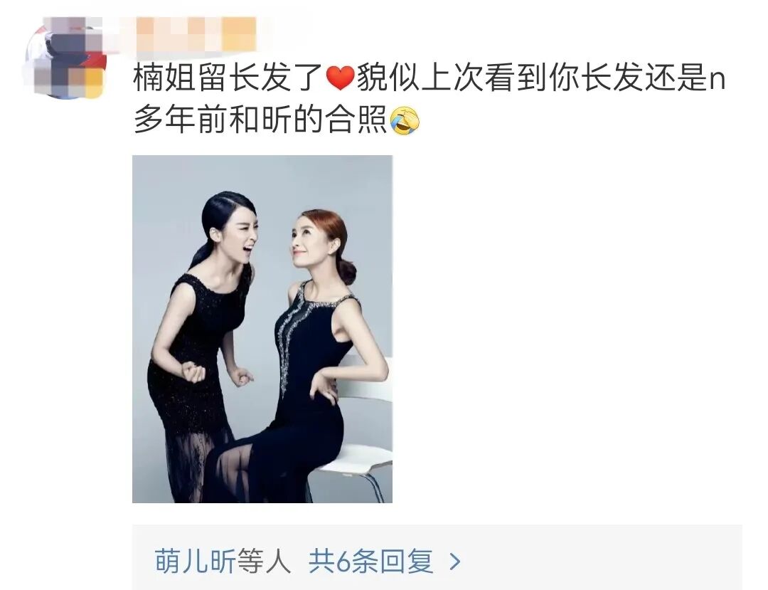 還有網友說:楠姐上次發佈長髮照片還是和吳昕一起拍合照⬇️