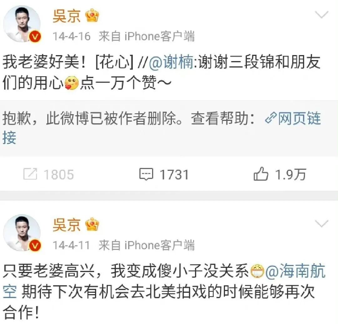 吳京為什麼這麼愛?除了當年的一見鍾情,謝楠真的是一個很有能力且目光長遠的人,之前楠姐說過: