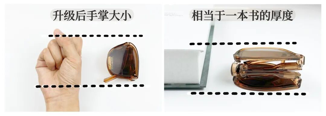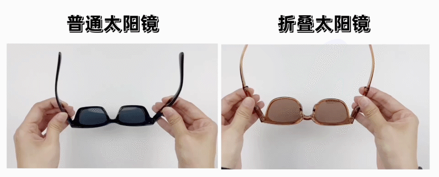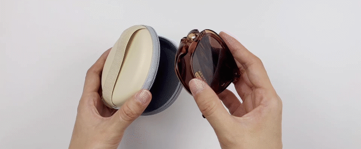 這款墨鏡是可以摺疊的,這麼咔咔兩下就疊好了。隨便你哪個小包都能裝得下。